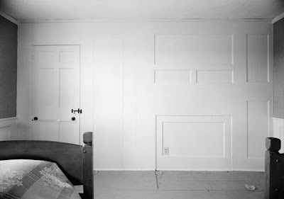 The wall at the foot of the bed is filled with ghosts. I know some first-hand; the others I can make out through the paint. Lives have passed by in this room.