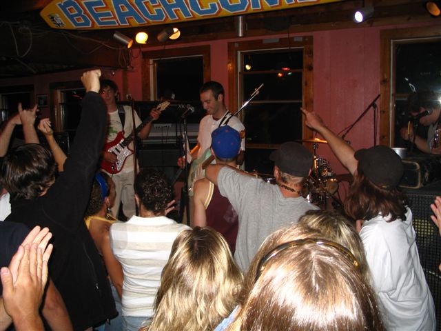There is a lot of commotion and confusion as Steve and I tried to set up the instruments and PA system for unfamiliar idiosyncracies in a crowded bar. The crowd was restless. The manager of the bar looked at the childish faces of the band, old enough to work in a bar, but not old enough to drink in one, and I saw a moment of doubt flash over his face. After we sorted out all the cables and applied all the necessary duct tape, those young fellows let it rip.