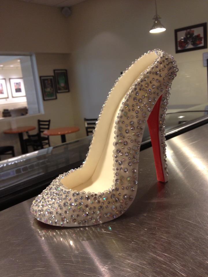 The Intertunnel is like my submarine, too. I get pinged, literally and figuratively, all the time. I feel the water temperature by putting my hand on the hull. Leslie from out west is kind enough to read, and comment, and buy furniture, and send the boys some shekels for their music videos. She is one of the many people I call my Interfriends: People I don’t know, and most likely will never meet, but they’re my friends. They know about me and mine, and I know something about them and theirs. If everyone that corresponds with me here were my actual instead of virtual neighbors, I’d live in the most interesting and pleasant town on earth. Leslie sent me a picture of her now grown, formerly homeschooled daughter’s work. She makes cakes. But saying she makes cakes is like saying Da Vinci was a housepainter. So I get to say something I’ve been dying to say since I was a little kid watching TV in the sixties: Ladies and gentlemen, tonight we have a really big shoe.