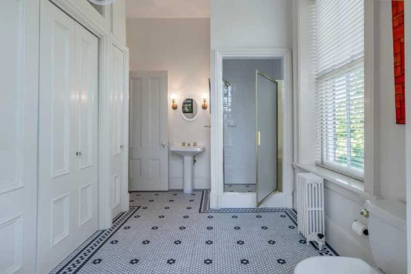 The en-suite master bath is posh. The guest bath isn’t too shabby either: