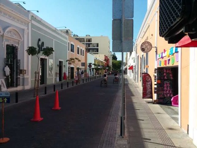 We ate a few times at the Maya Chuc. It’s a neighborhood restaurant that serves authentic Mayan food. I guess it’s authentic. How would I know? If they cut a leg off a rhino from the zoo and fed it to me, I’m too Spanish-deprived to call their bluff. Large local families like to eat in there, and we liked making faces at their impish but well-behaved children when they mugged at us. The cafe fronts two pleasant streets, so it’s fun to watch the passersby while you eat. On Sunday, one street was blocked to traffic and people cycled by on every kind of contrivance you can pedal. The entire city is flat as a pancake, so cycling is easy if you can stand the sunshine boring a hole in the top of your head. Maybe you should wear a jipjapa or something, norteamericano.