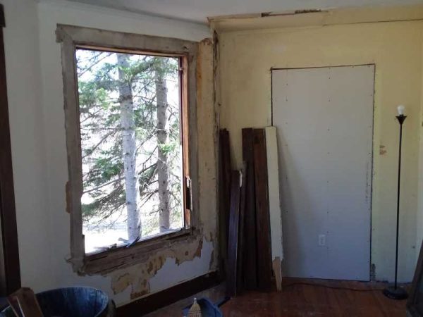 The floor was birch strip flooring. It was solid, but pretty battered. We could save that. There was no door in the opening when we moved here. I slapped a coat of paint on the walls, we hung a curtain in the opening, and my wife and I slept on that old, battered, black pull-out couch, with all our clothes on, until summer rolled around, and we could make a second bedroom habitable. Of course our children slept in the master bedroom, with lots of electric baseboard heat. We like our children better than we like each other, I guess.